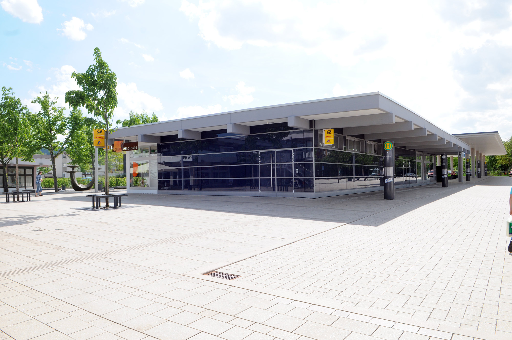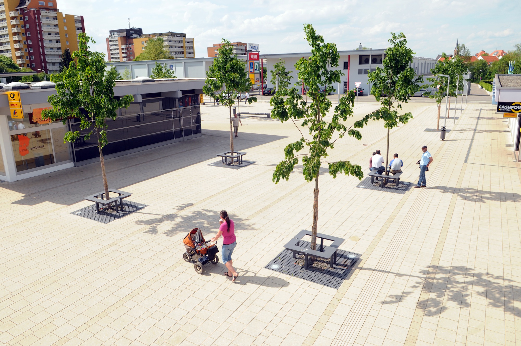Die Grundzielsetzungen unseres Entwurfskonzeptes waren erlebbare Neugestaltung des Marktplatzes als zentraler öffentlicher Raum der Stadt und Anbindung des neuen Einkaufzentrums an die Stadtmitte über den ebenfalls neu gefassten und gestalteten Platzraum des Busbahnhofes.